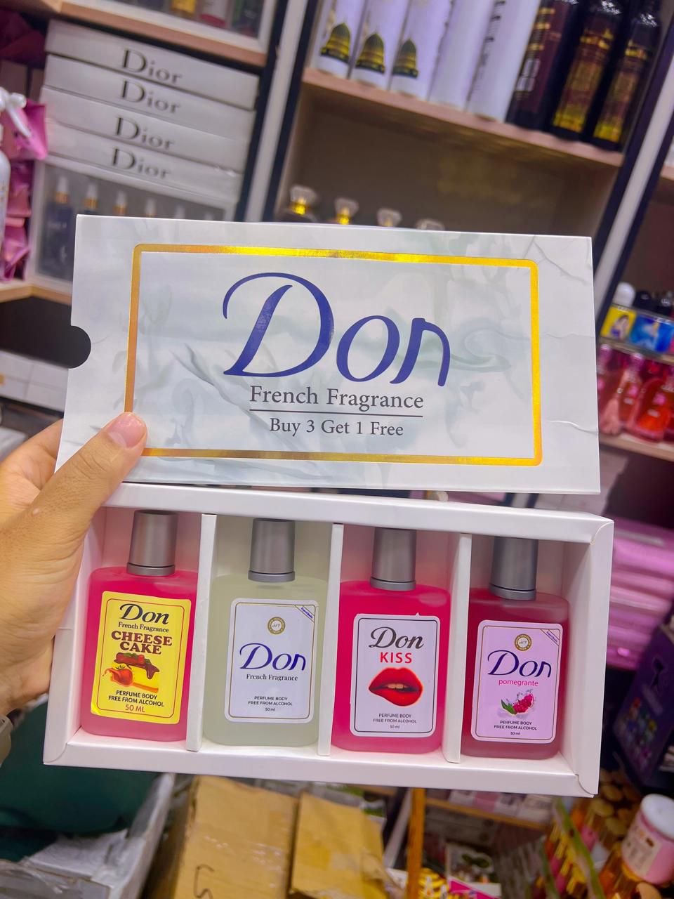 فـ بوكس Don معمول مخصوص علشان يدلعك بأربع روايح مختلفة، وكل واحدة فيهم عالم لوحده 🌸